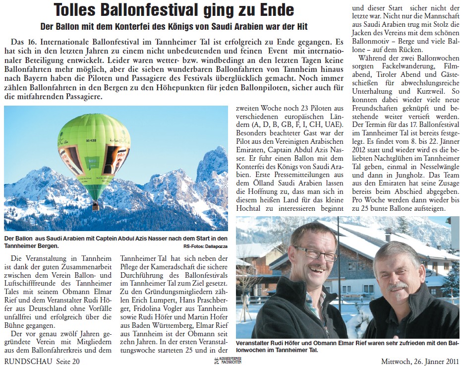 Bericht vom Festival in der Rundschau Reutte - Januar 2011